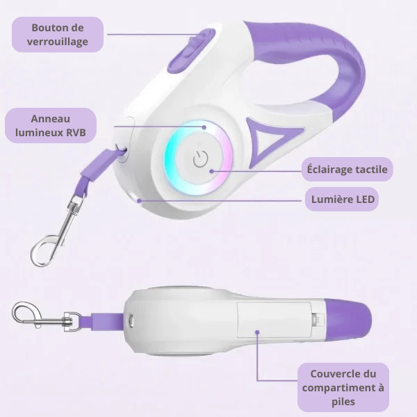 Cette laisse rétractable intelligente avec lumière LED intégrée est idéale pour les promenades nocturnes ou par faible luminosité 🌙✨. Son design ergonomique, ses couleurs tendance et son éclairage assurent une visibilité maximale et un look irrésistible 🧡