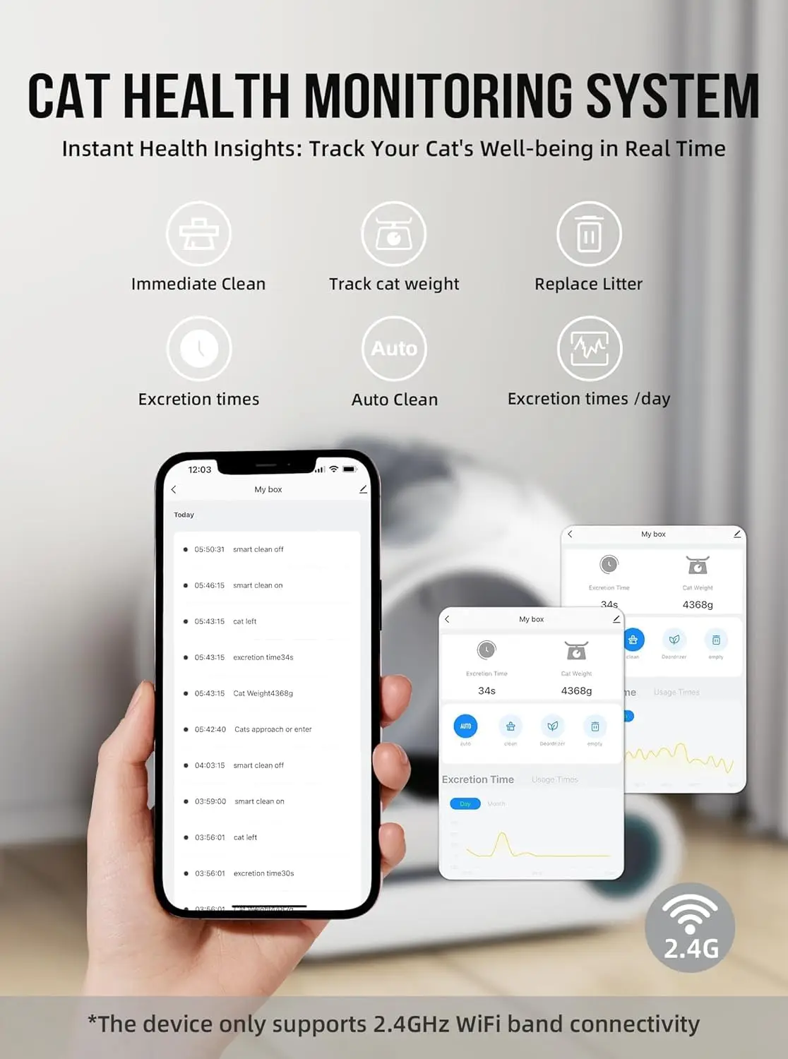 Fini le nettoyage manuel quotidien ! Offrez à votre chat un bac à litière intelligent, autonettoyant et contrôlable à distance. Grâce à l’application mobile dédiée, vous gérez en temps réel l’état de la litière, la fréquence de nettoyage, et recevez même des alertes d’entretien.